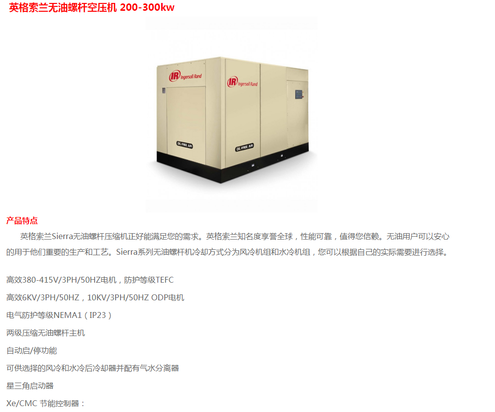 英格索蘭無油螺桿空壓機(jī)200-300KW
