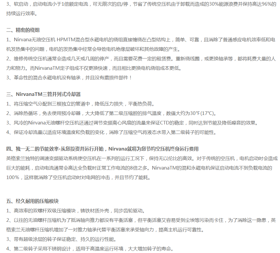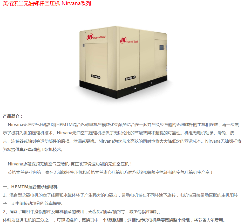 英格索蘭無(wú)油螺桿空壓機(jī)Nirvana系列
